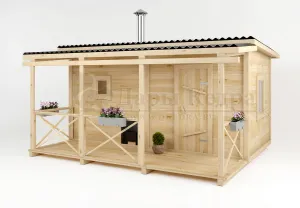 Каркасно-щитовая баня из кедра «Оптима» с верандой