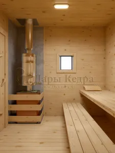 Баня изготавливается из кедра без отбора по сучкам. Сучки у кедра не смолят и именно они содержат в себе максимальное количество полезных веществ - фитонцидов.