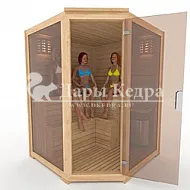 Двухместная угловая финская сауна кабина из кедра с электрокаменкой